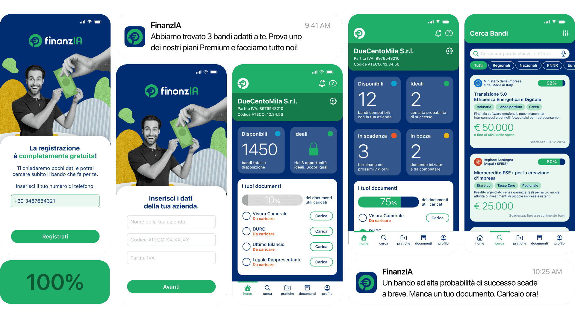 Abbiamo progettato da zero un sistema di matching predittivo che sfrutta l'AI per connettere le PMI ai fondi pubblici. Non ci siamo limitati a disegnare un'interfaccia: abbiamo costruito un modello di business freemium e curato l'intero pitch strategico.