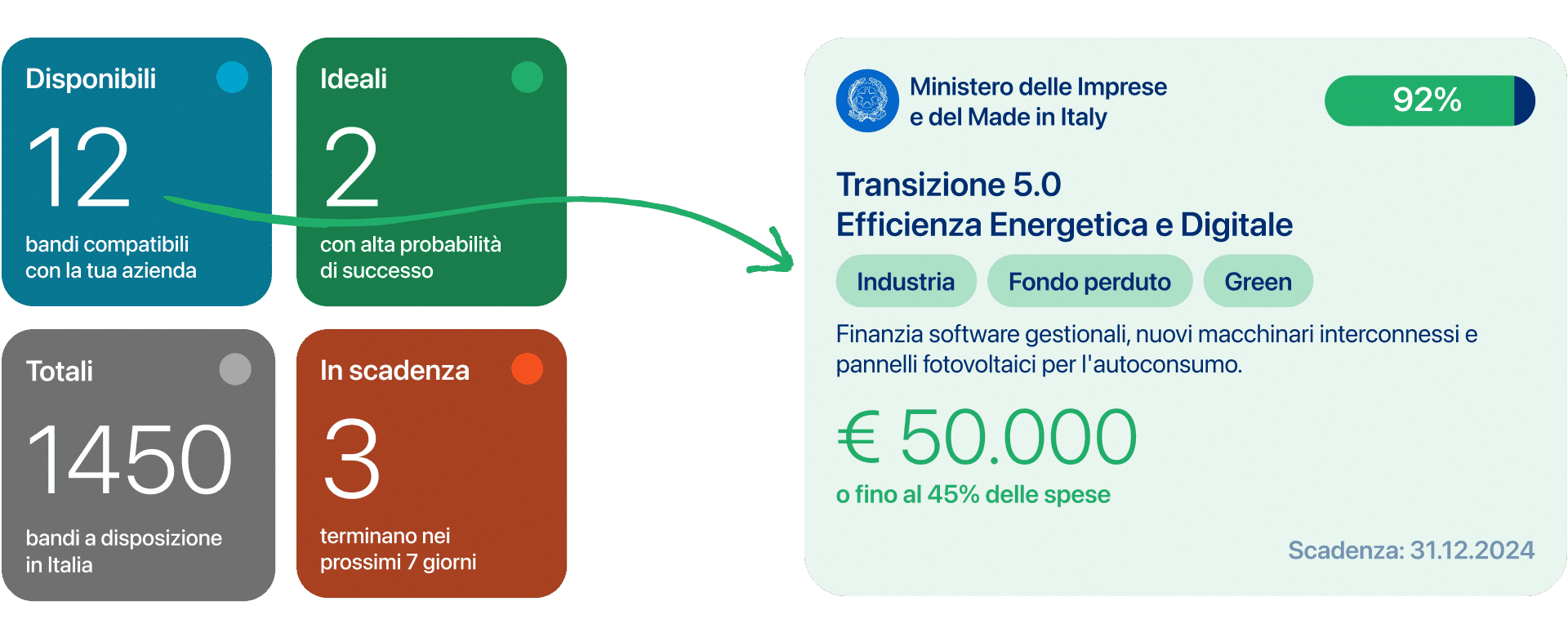 Non serviva un ennesimo motore di ricerca, ma un cambio di paradigma basato su 4 pilastri: aggregare i bandi, abbinarli all'azienda giusta, stimare le probabilità di successo e compilare le pratiche in automatico tramite AI.